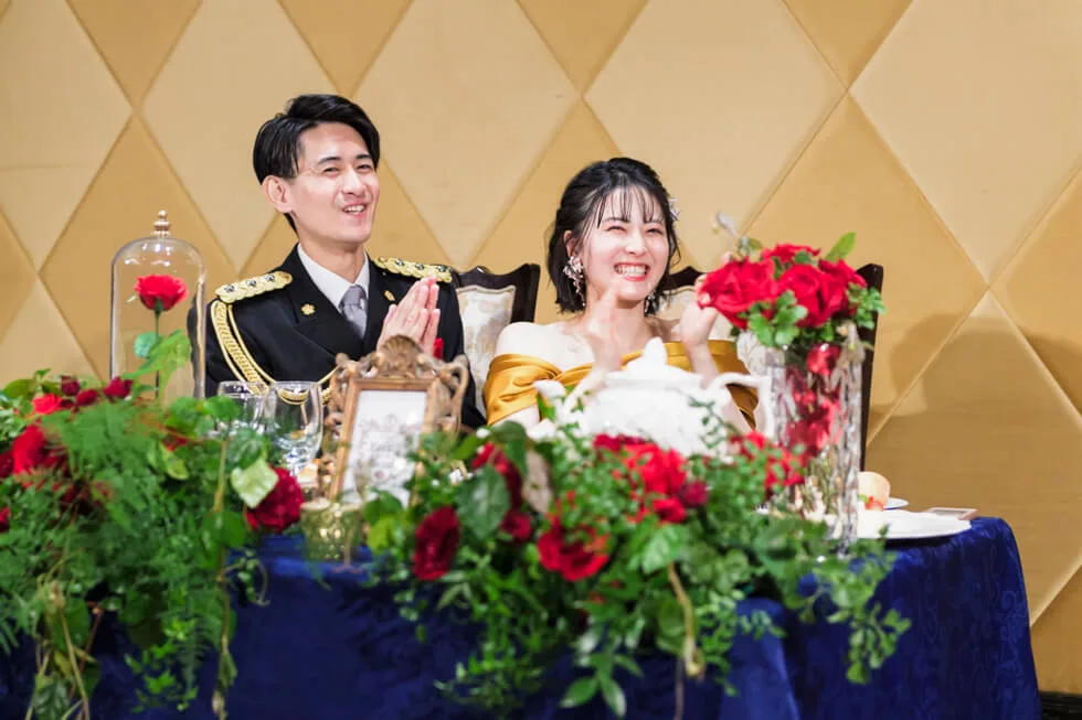 2025.01.26 みんなで叶える、いちばん幸せな夢のような1日 挙式会場 : セント サイモン ゼロテス 披露宴会場 : ホール アークハート スタイル : 教会式 人数 : 61名 感動的なファーストミート 美しく輝くティアラ、お気に入りのウエディングドレスを身に纏い、チャペルで待つ新郎様のもとへ。 ステンドグラスを背景に一生に残るお写真タイムから一日が始まります。 ゲストに見守られながら、厳かで感動的な教会式のセレモニー。 自分たちだけでなくゲストも楽しんでもらえる一日にしたいと、パーティーでの演出を考えられてきたおふたり。 コンセプトで空間も彩るパーティーの演出 プリンセスに憧れをお持ちの新婦様。 衣装の色当てクイズでは、プリンセスらしい飾りつけで、リンゴ(赤)バラ1本(黄色)サンゴやクラゲ(水色)でお花や装飾も美女と野獣感をたっぷりと取り入れて空間も演出に。 各テーブルの卓上のお名前はプリンセスのお名前で統一。披露宴はアイドル仲間のゲストと新婦様で、新郎様へのサプライズ。歌と踊りでみんなを魅了されました。 レポート一覧を見る トップページに戻る
