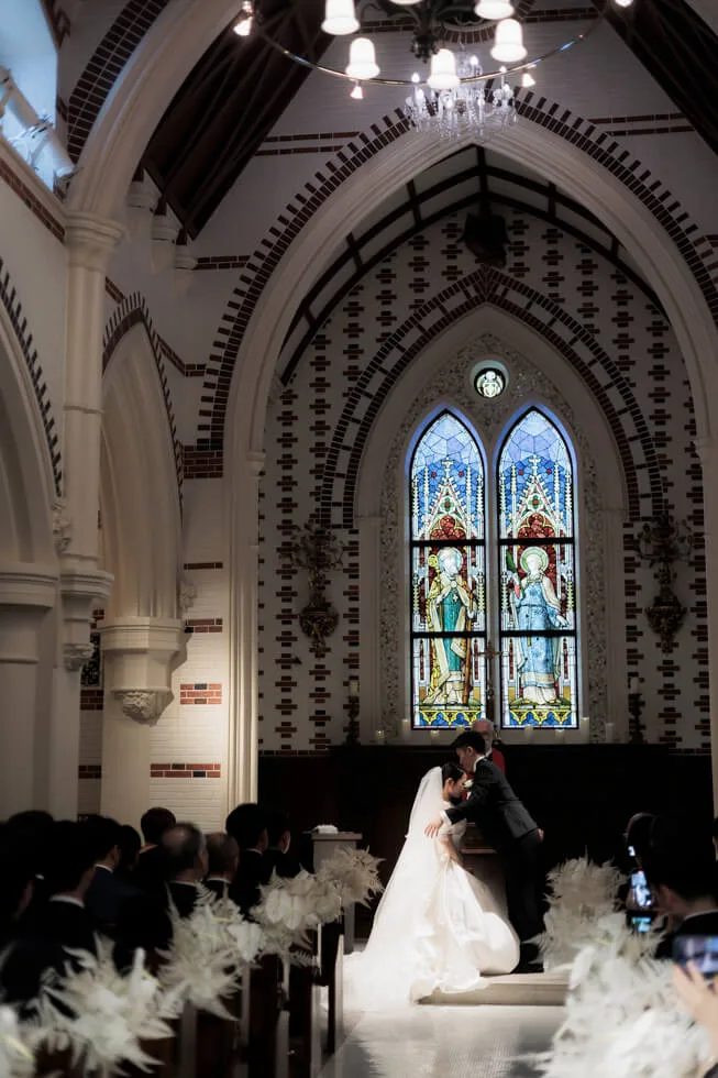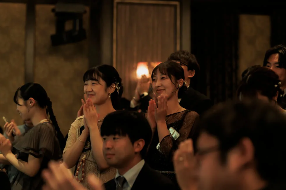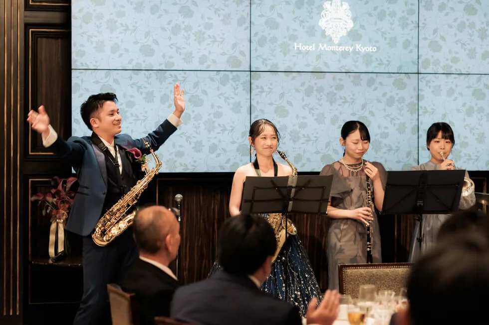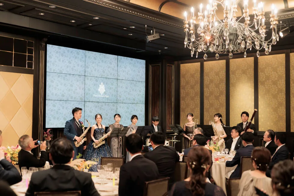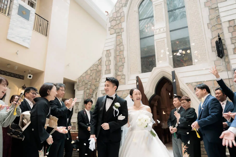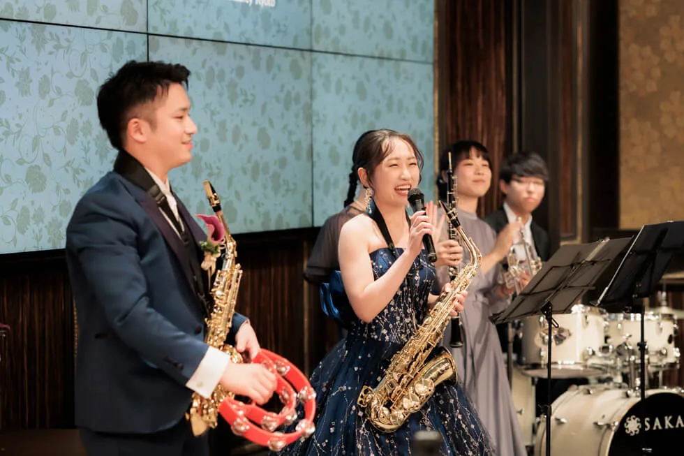 2025.10.12 みんなの記憶に残る楽しいご結婚式 挙式会場 : セント サイモン ゼロテス 披露宴会場 : ホール アークハート スタイル : 教会式 人数 : 76名 おふたりにとって大切な人たちと、思いっきり笑って楽しむ素敵な結婚式をご紹介します。 共通の趣味を分かち合うおふたり 新郎様と出会われてゴルフや阪神タイガースファンになられたと笑顔でお話された新婦様。思い切り楽しいこととして、チャペルガーデンでジェット風船を六甲おろしの音楽と共にゲストみんなで飛ばされました。 お色直しも演出に 衣装の色当てをサイリウムに全員参加で入場時当たりの方へプレゼントをお渡しされながら入場。 これからのおふたりの形をパーティーでご披露 今まで新郎様の好きなことを新婦様も好きになり一緒に楽しんで来たけれど、これからは新婦様の好きなことも分かち合っていきたい。新婦様がずっと続けてきたサックスを体験したいと、今まで管楽器をされたことのない新郎様がサックスを購入され練習!ゲストの皆様の前でたくさんの管楽器やドラムと一緒に演奏されました。 みんなが笑顔になり会場が一体感に包まれました。 最後までゲストの笑顔と記憶に残る一日に。 最後は皆様に笑顔の記憶でお帰り頂くため、プチフギフトをお菓子のつかみ取りに。お菓子と共にグループごとに送賓時写真を撮影されました。 いつまでもみんなの記憶に楽しかった!最高!と思っていただくようなご披露宴となりました。 レポート一覧を見る トップページに戻る